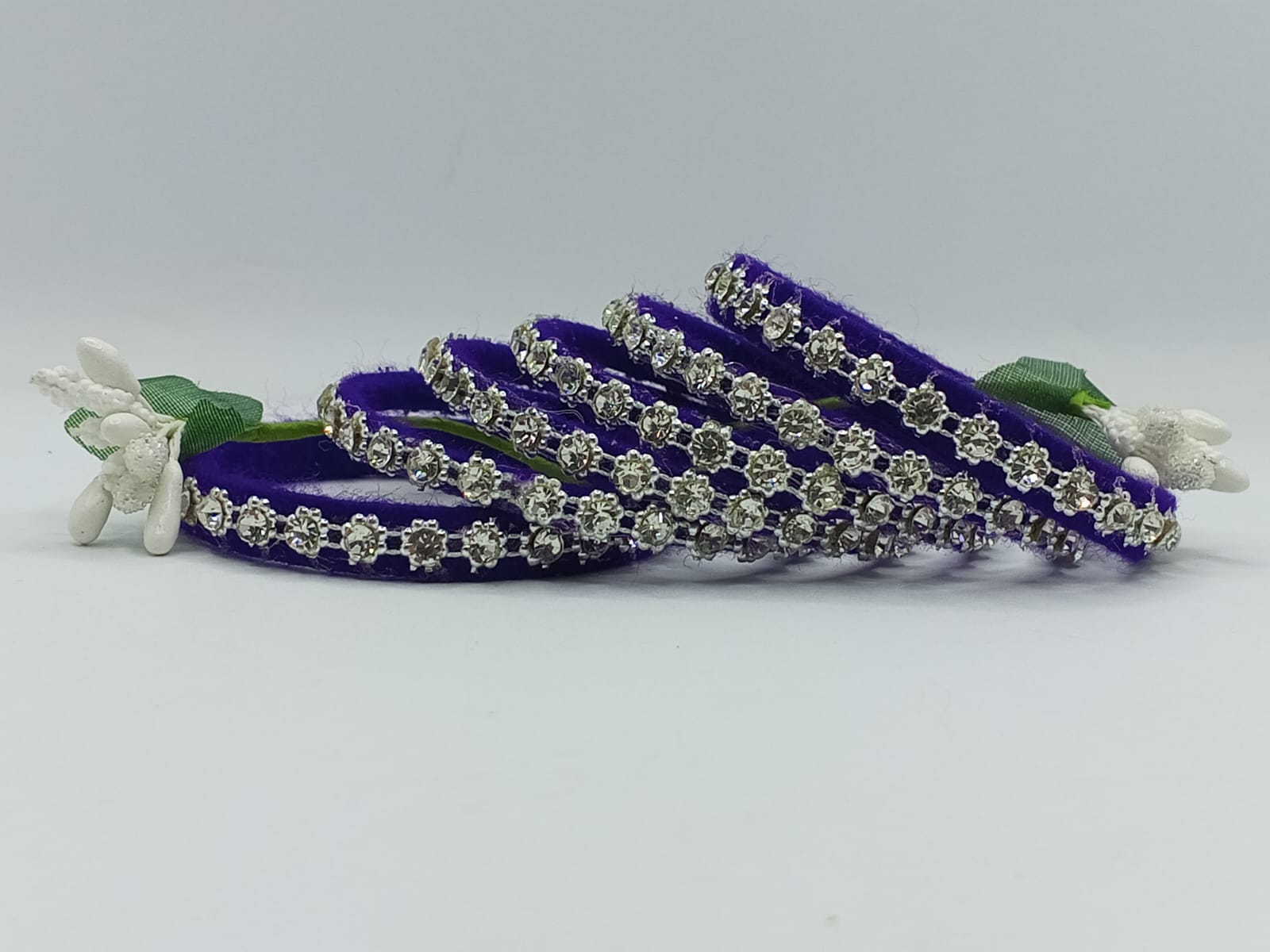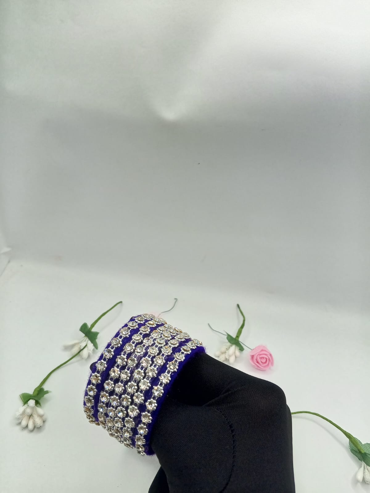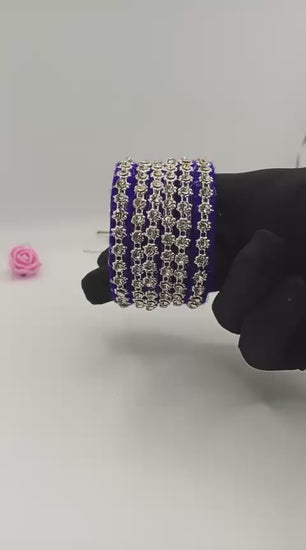 ✨ Product Overview: Introducing the Azure Crystal Chain Elegance Bangles — a stunning fusion of rich blue velvet and shimmering silver-white crystal stones. Designed with a unique chain-style pattern, this handcrafted set brings elegance, shine, and sophistication to your look.